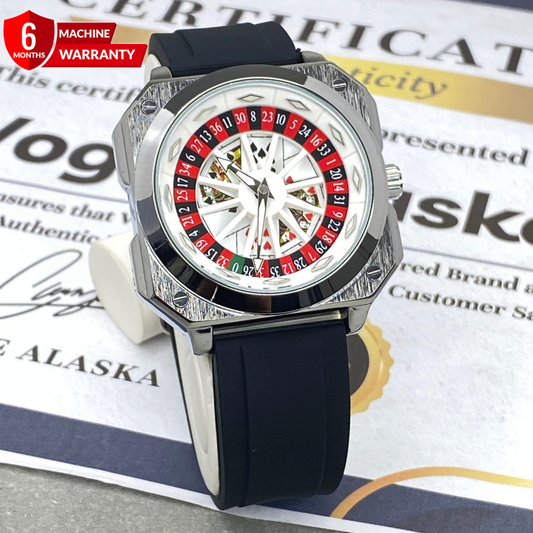 Classic Caseno Design Spinning Wheel Square Dial Watch With Silicone Straps For Men