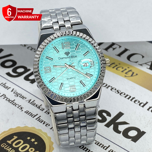 Diamond Blue Luxury Analog Quartz Stainless Steel Matching Couple Watches