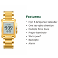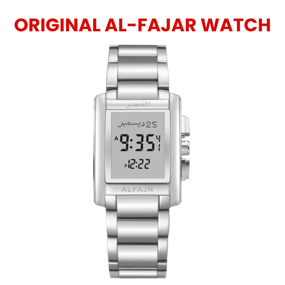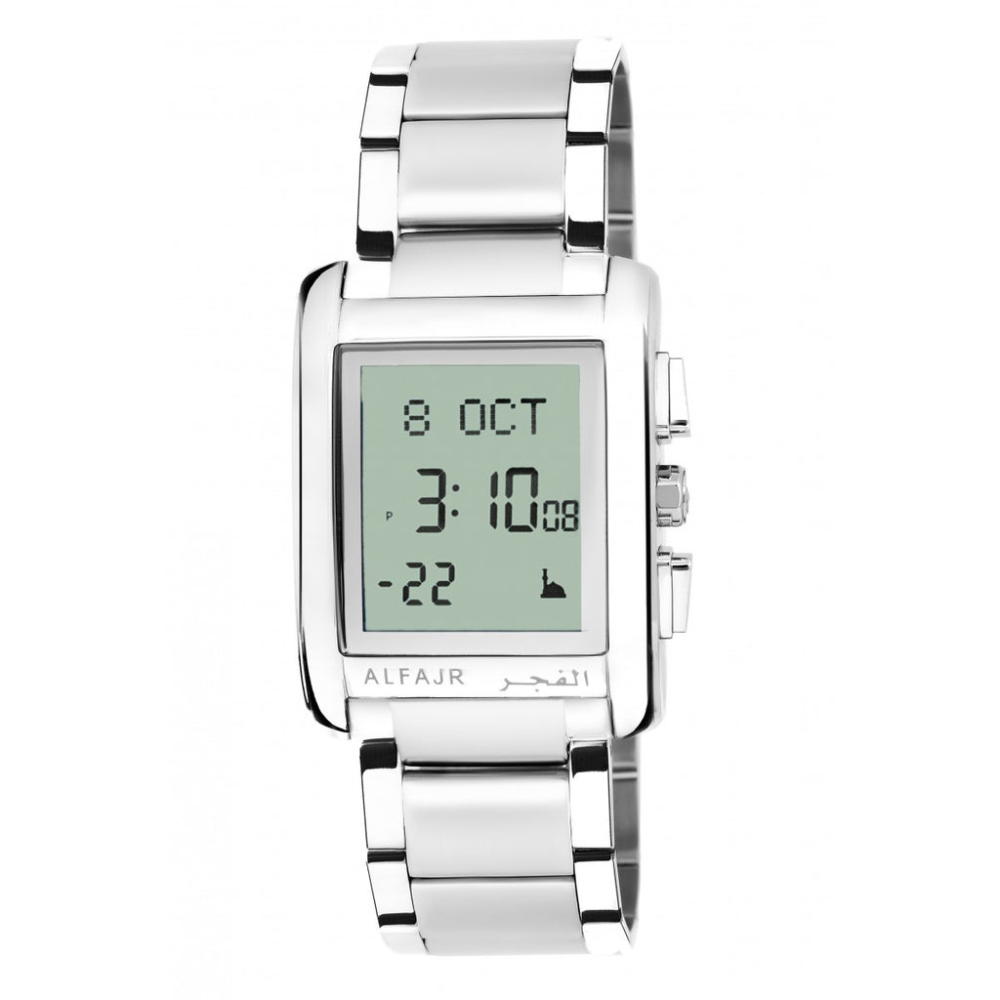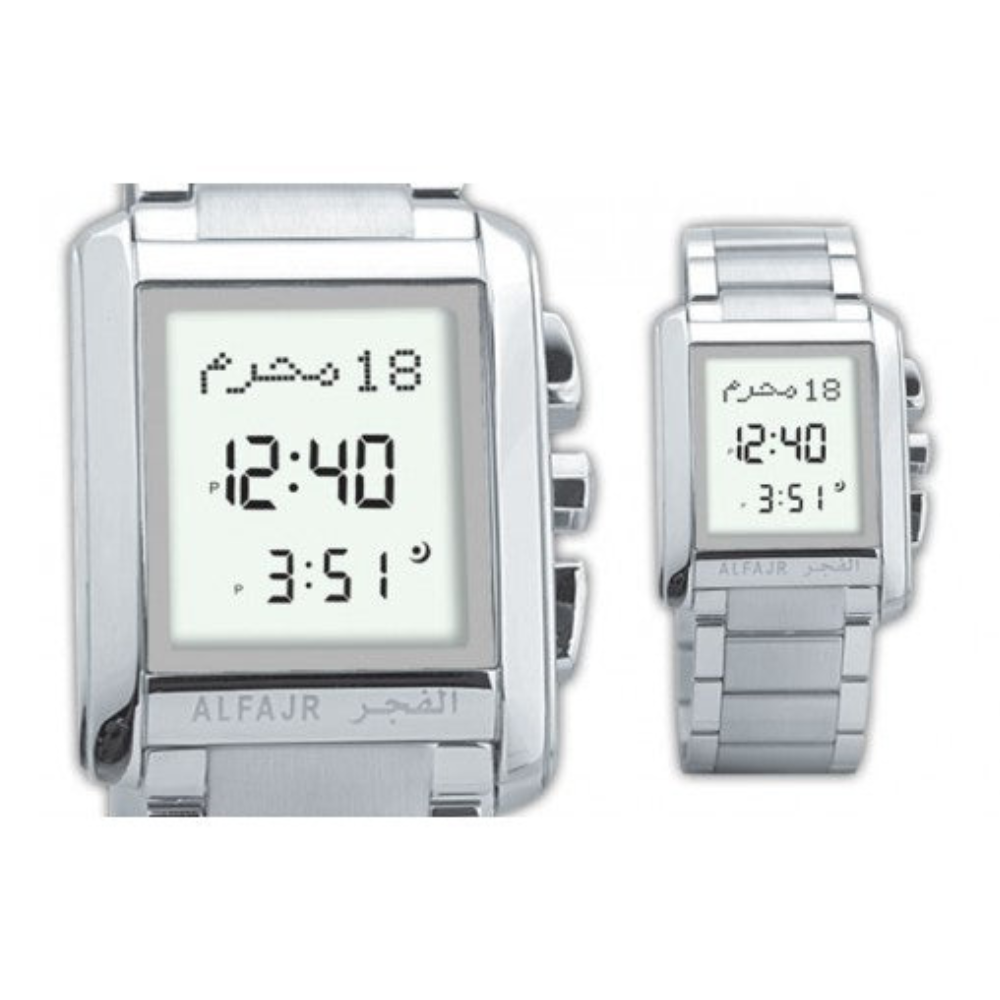 Al Fajar Original Men’s Stainless Steel Digital Watch with Azan Prayer Alarm Qibla Direction and Hijri Calendar