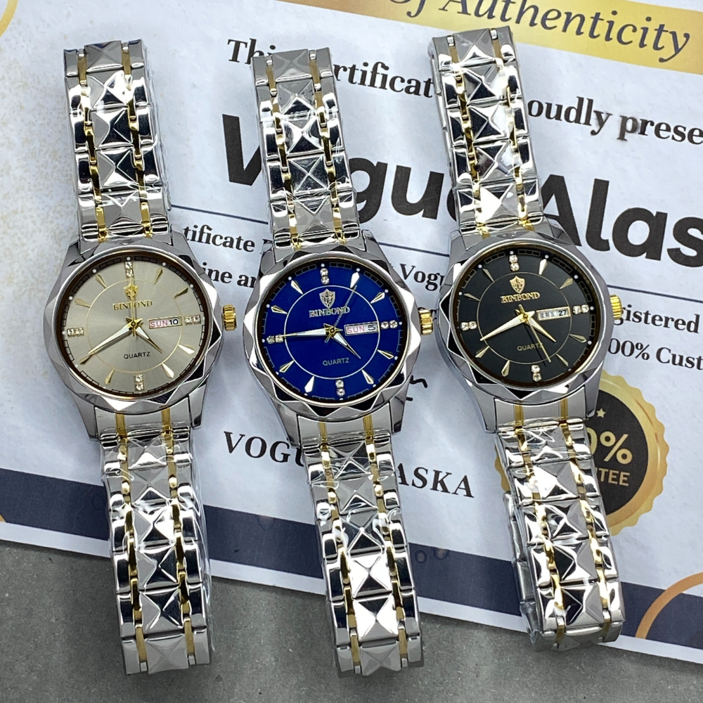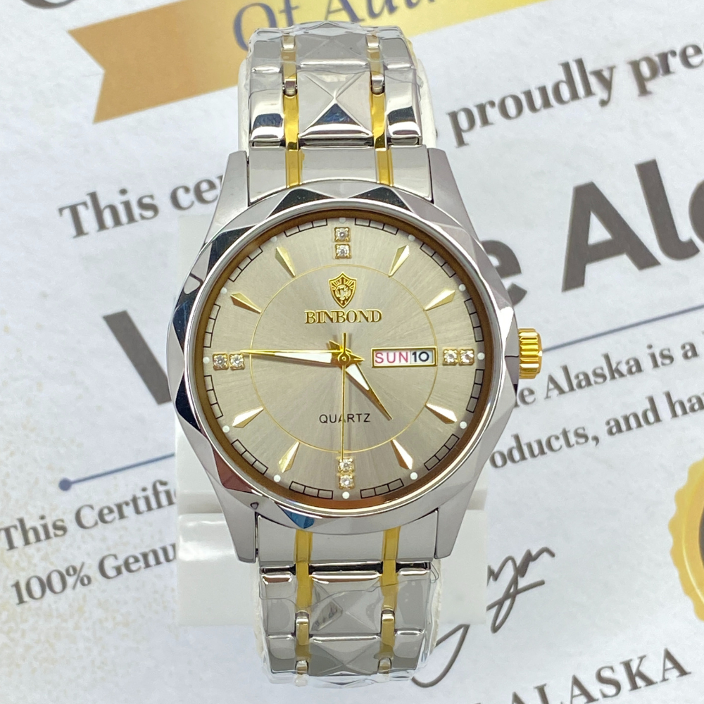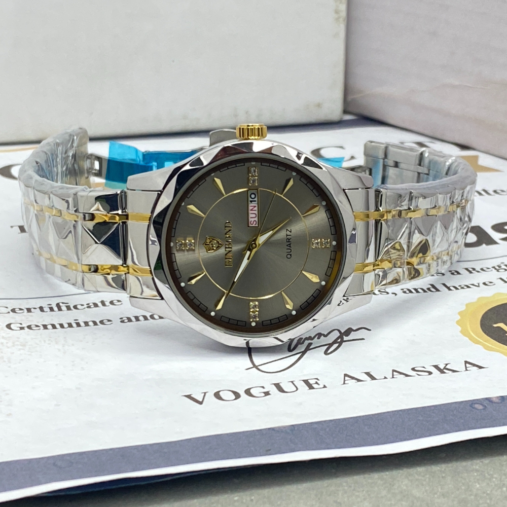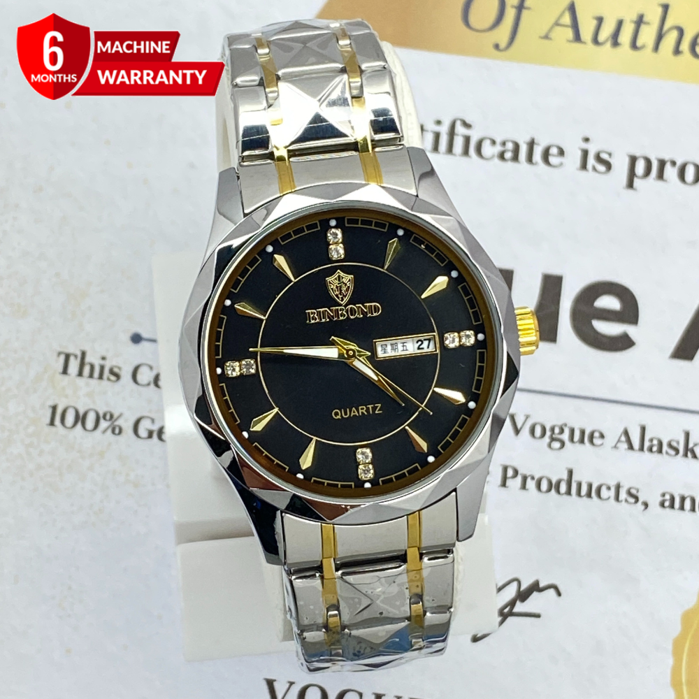 BINBOND Analog Time Luxury Stainless Steel Watch For Men with Date & Day Display