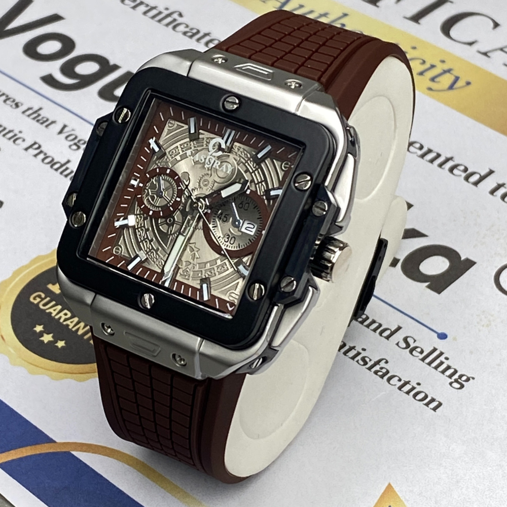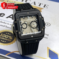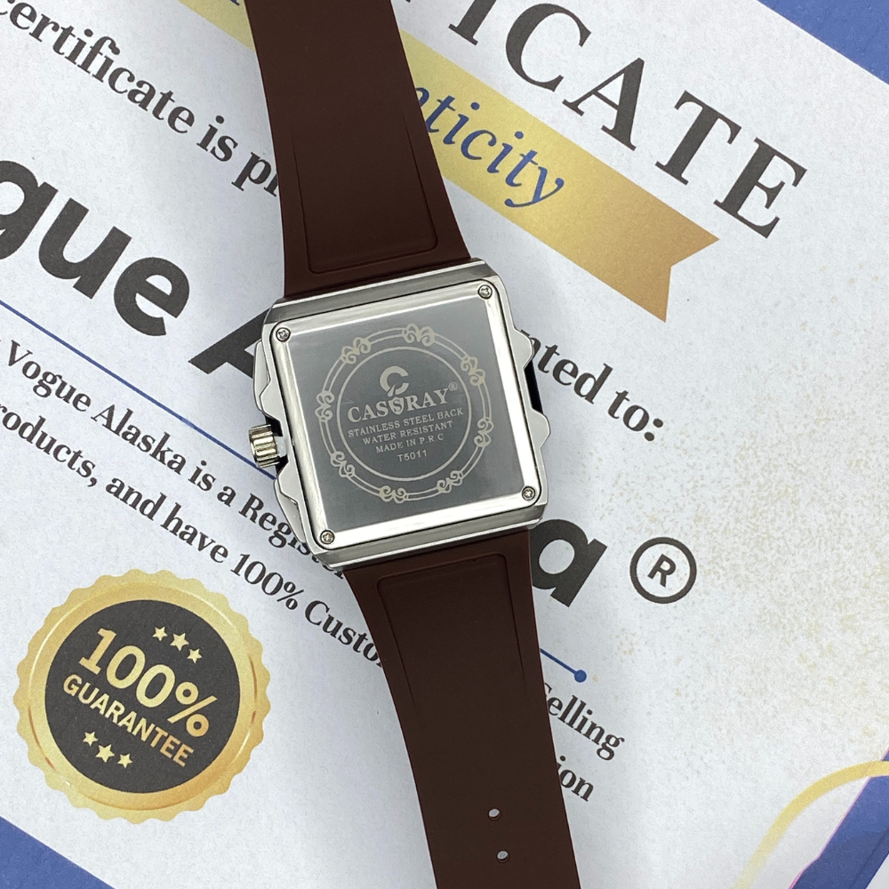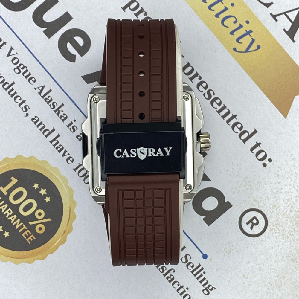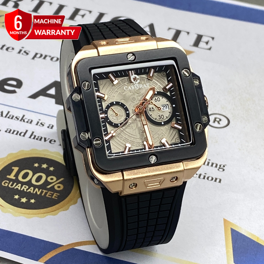 CASSRAY Square Shape Metallic Dial Durable Rubber Straps Men's Analog Quartz Watch With Date Display