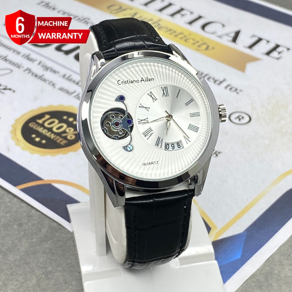 Cristiano Aillen Face Gear Display Analog Quartz Straps Watch For Men With Date Display