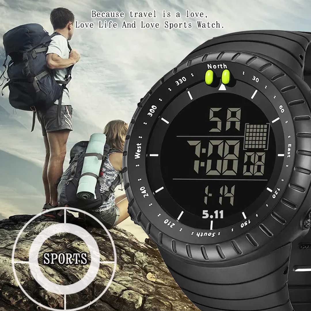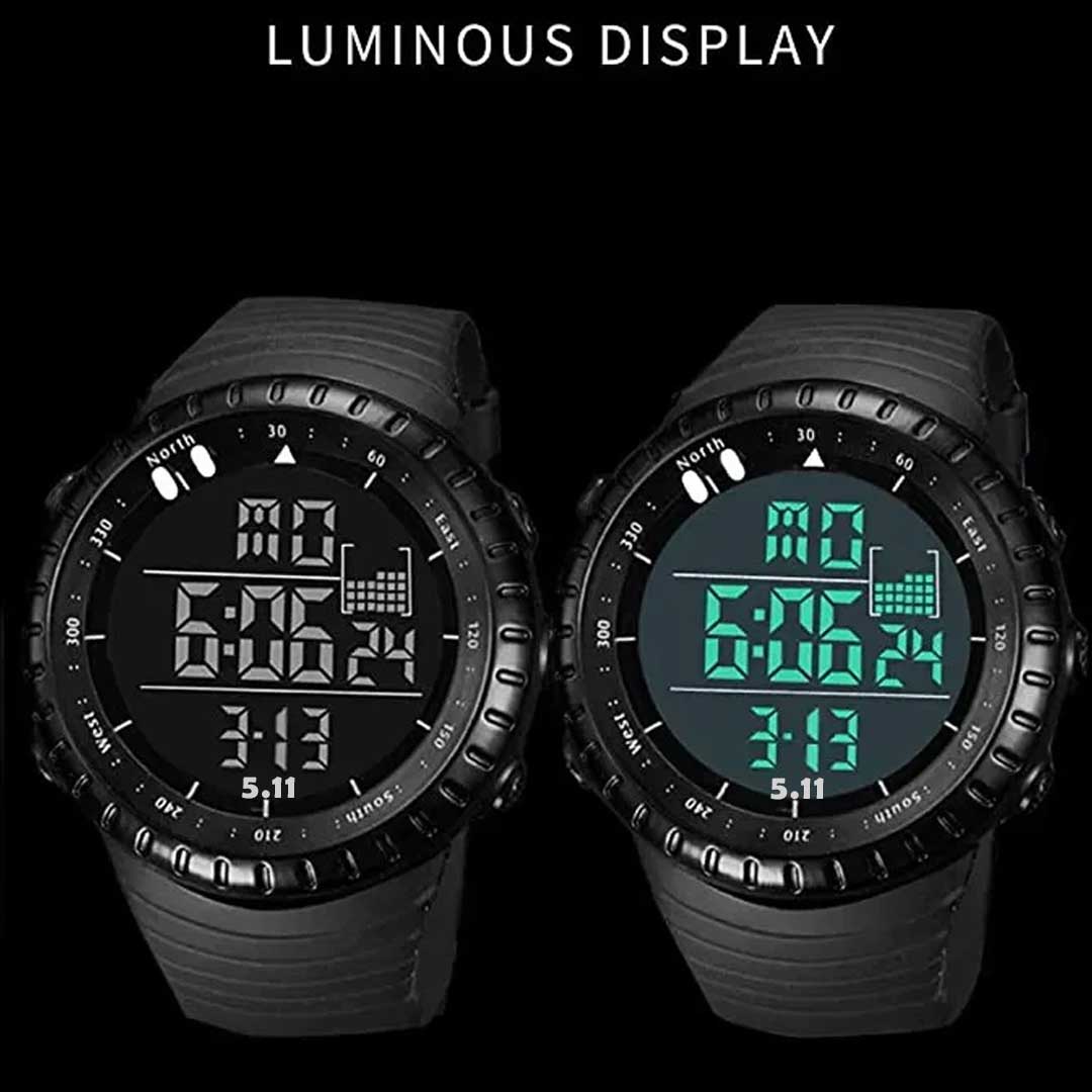 Digital Display Round Dial Rotatable Bezel Multifunctional Sports Watch For Men
