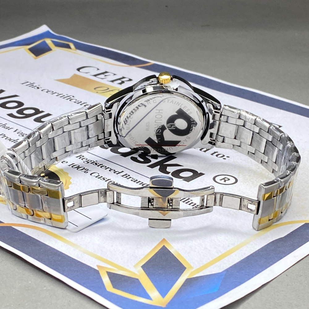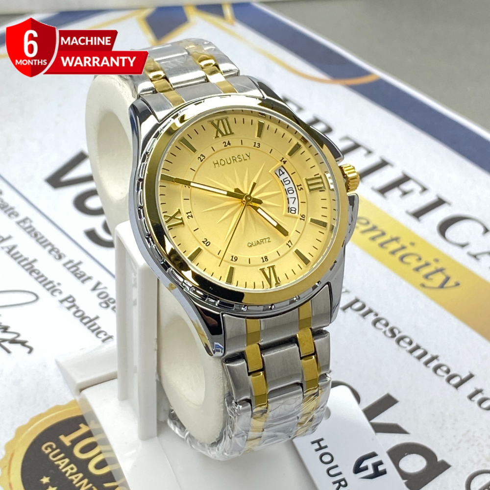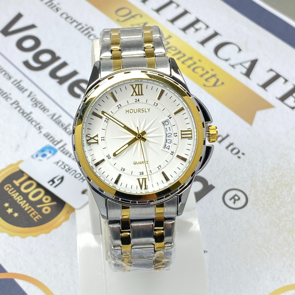 HOURSLY Round Dial Analog Quartz Movement Durable Stainless Steel Chain Watch With Date Display