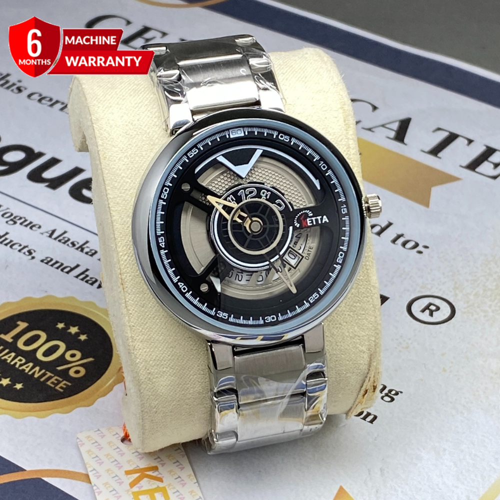 KETTA Classic Stainless Steel Chain Men’s Watch with Analog Quartz Movement and Date Display