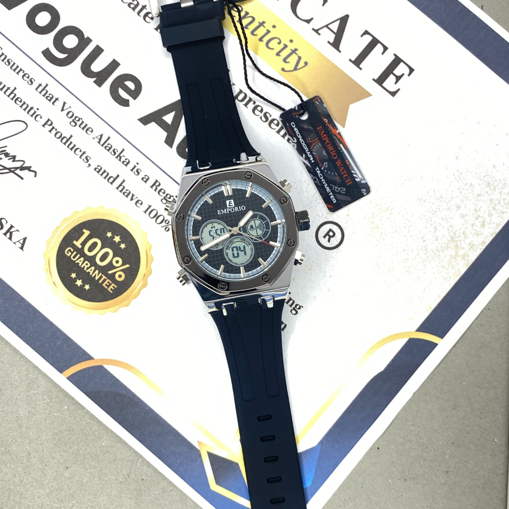 Luxury Men’s Dual Time Multifunction Watch with Octagonal Dial and Silicone Straps
