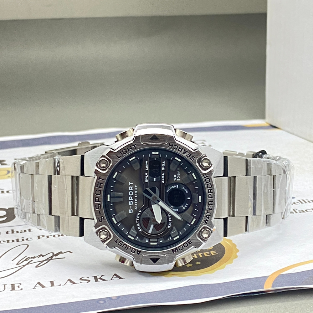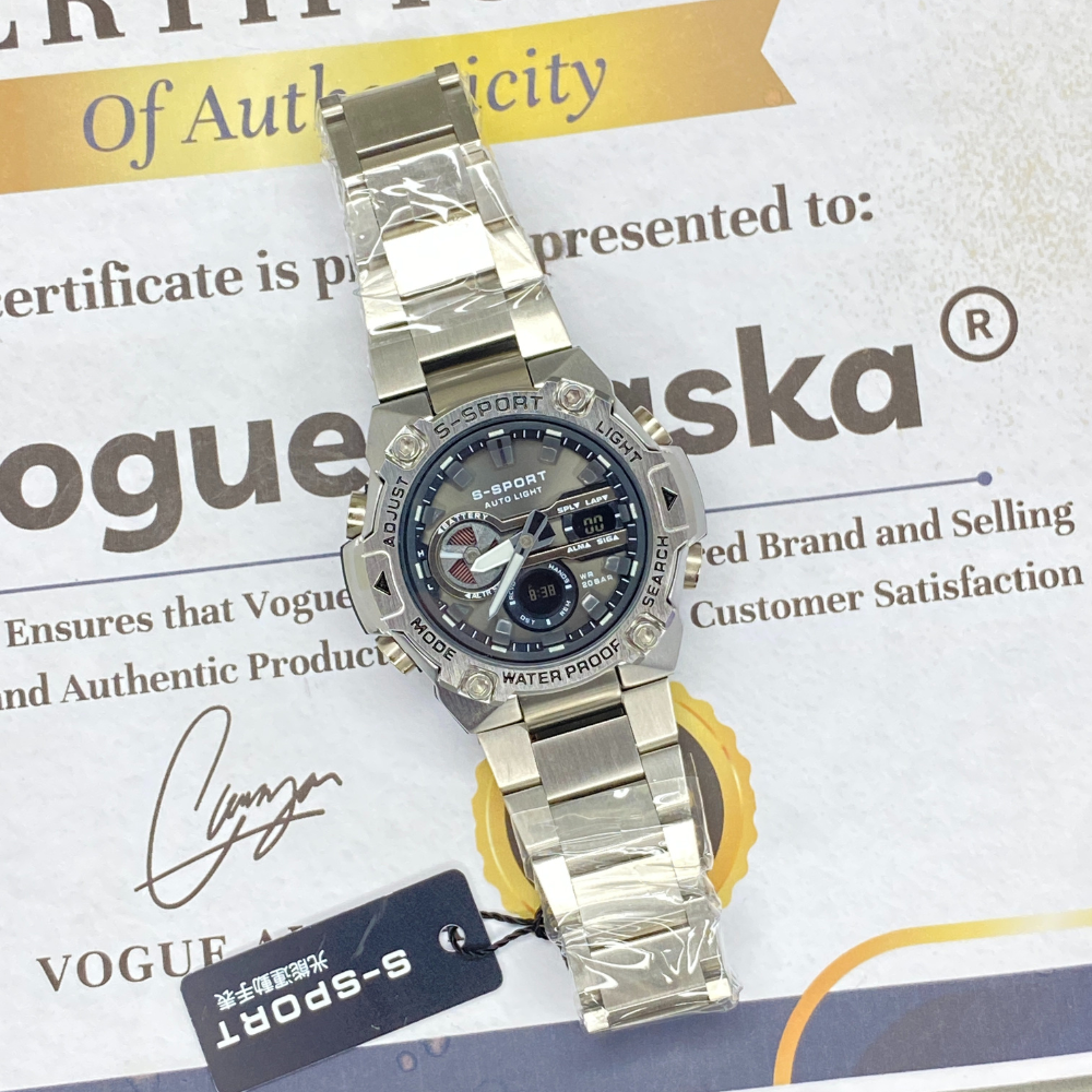 S SPORT Dual Time Bold Design Stainless Steel Made Muti-Functional Chain Watch For Men