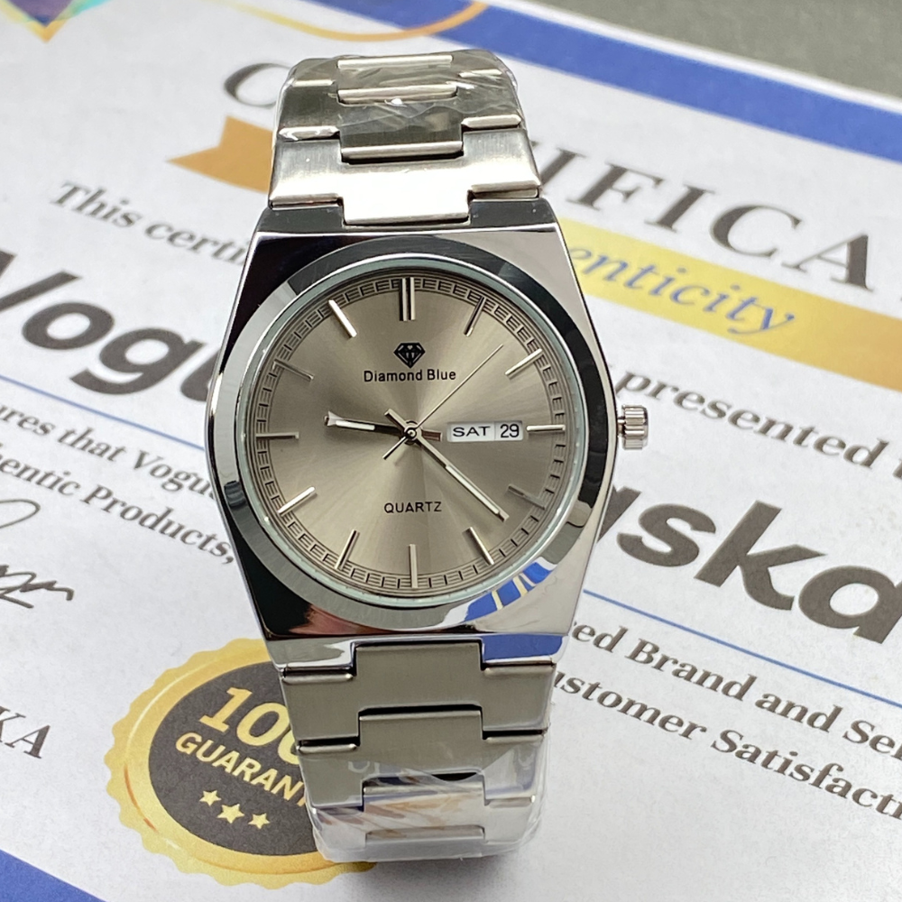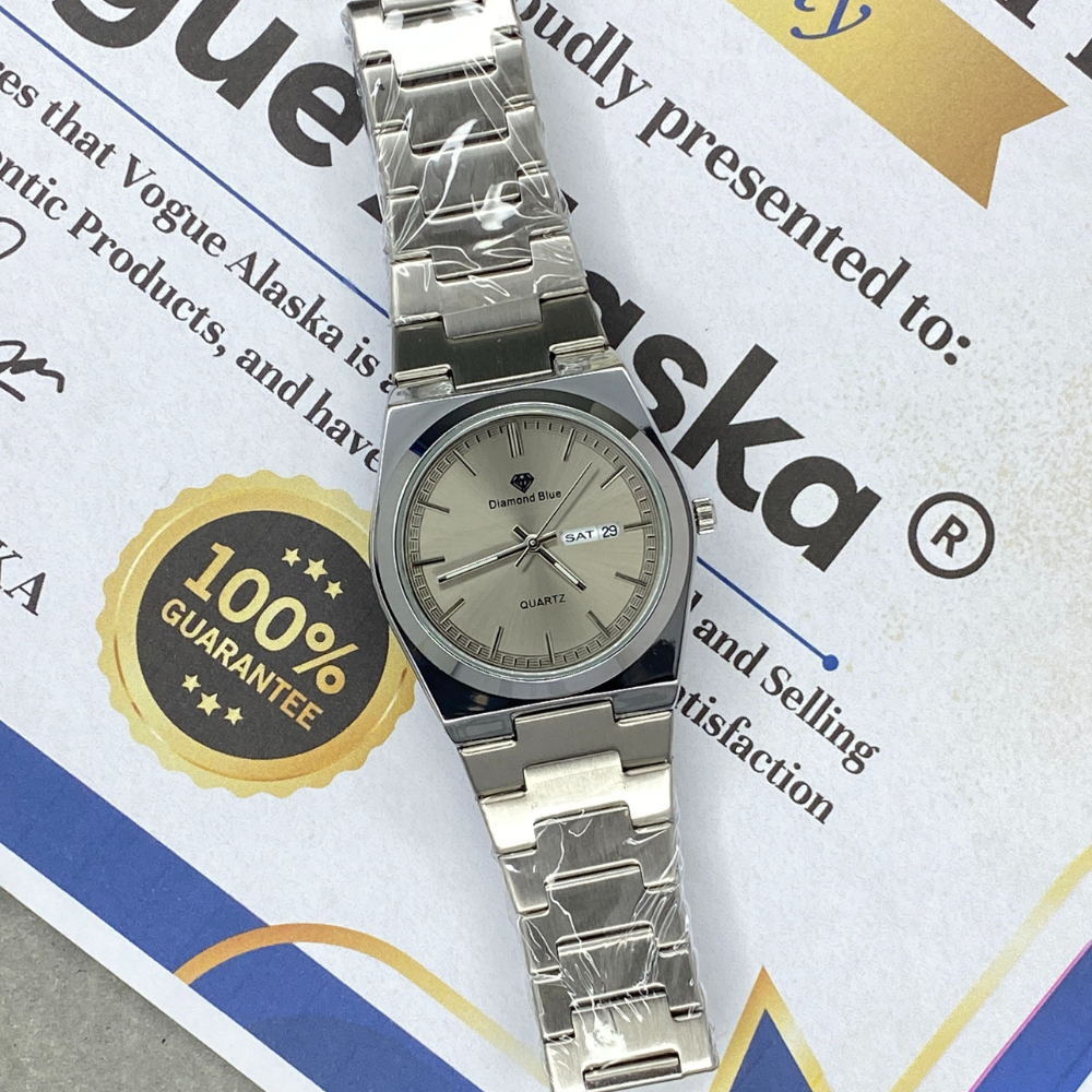Slim Dial Luxury Analog Quartz Stainless Steel Made Chain Watch With Date & Day Display for Men