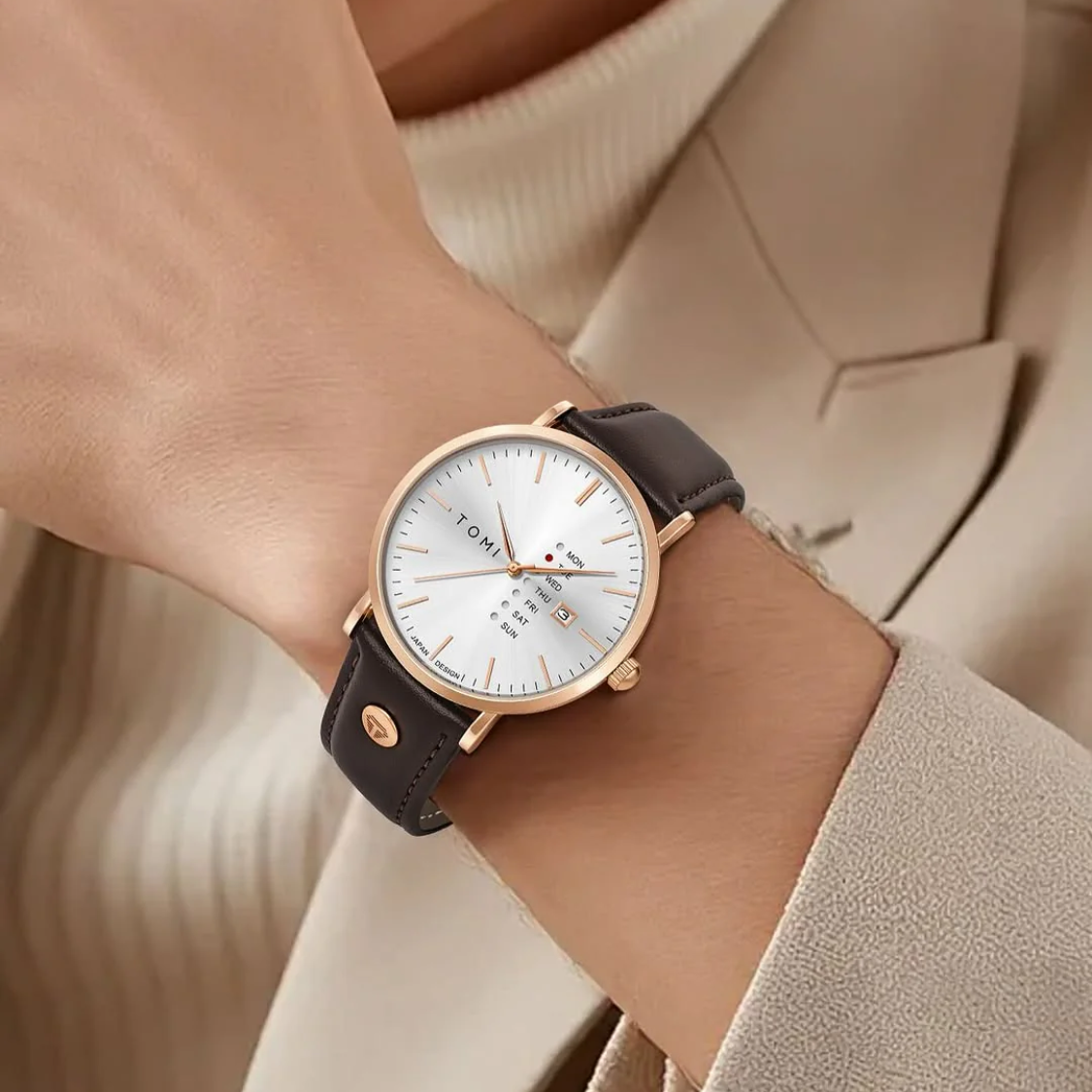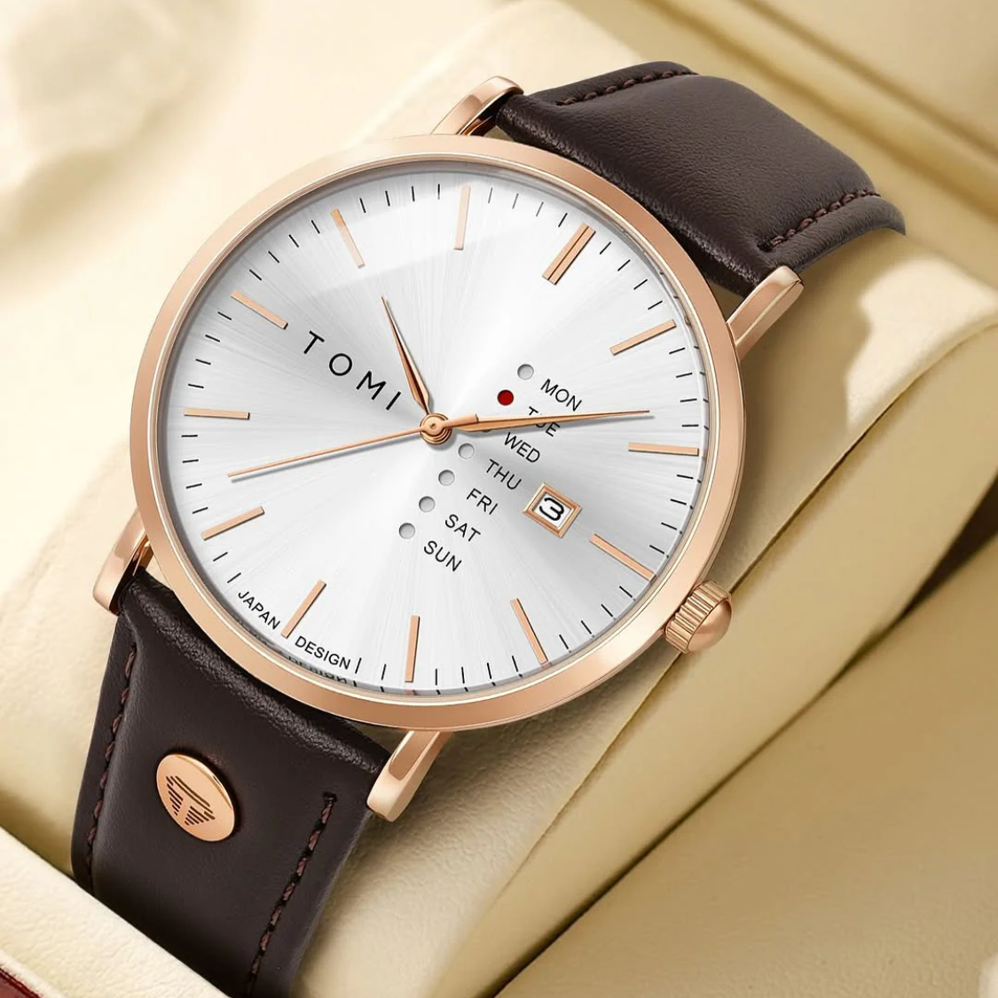TOMI T-019 Round Dial Durable Straps Watch With Date & Day Display For Men