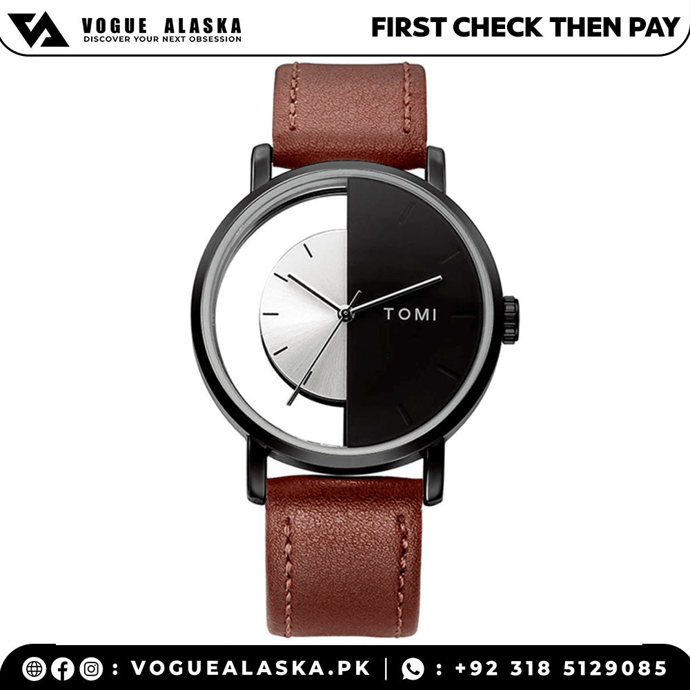 TOMI T-080 Transparent Design Leather Strap Watch For Men